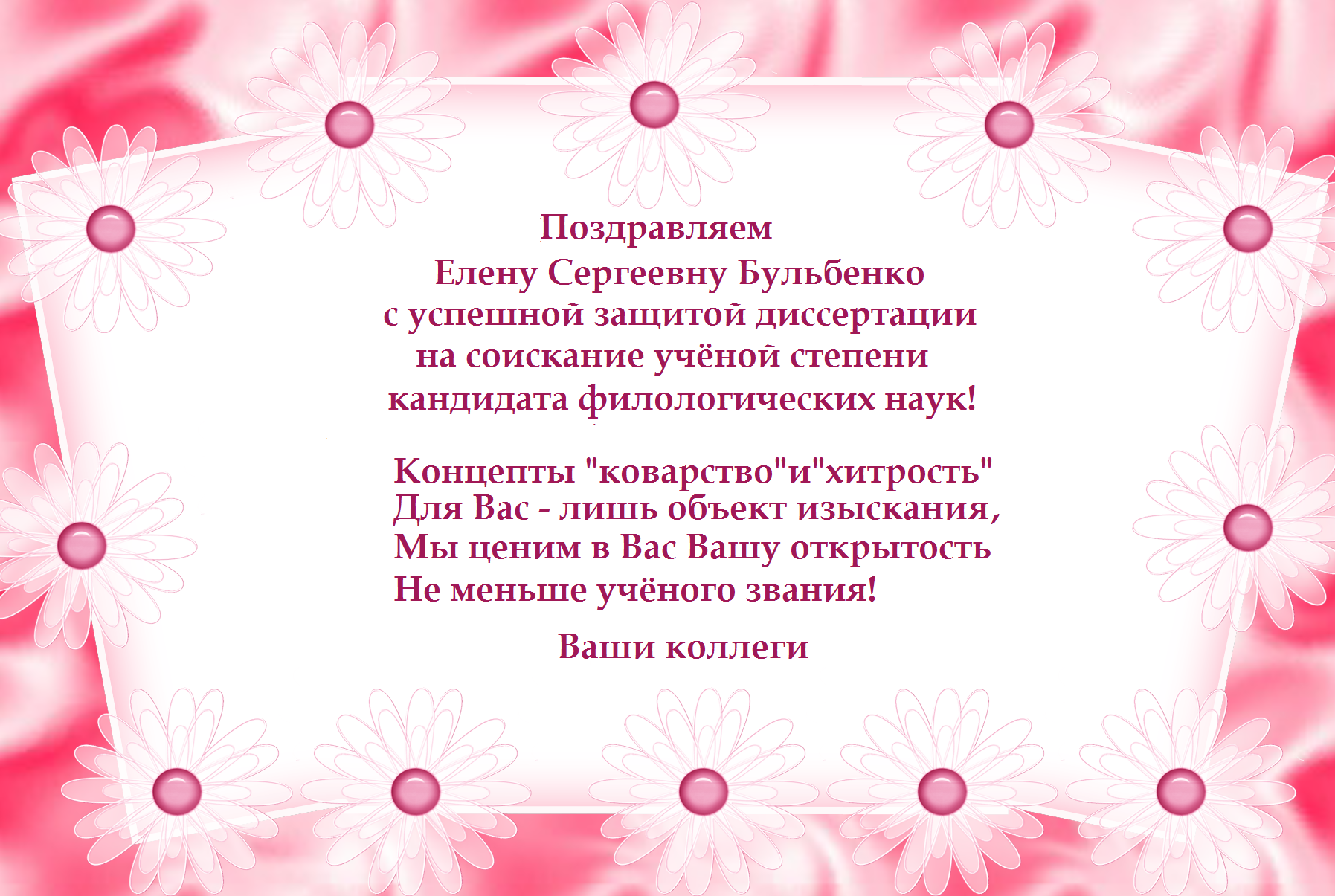 Поздравляем Е.С. Бульбенко!